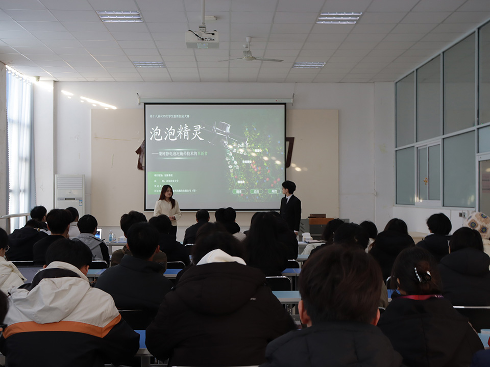 《泡泡精灵——果树静电泡泡施药技术的革新者》和《碳路先锋——创新微生物固碳系统探索者》两个项目负责人通过PPT讲解和视频展示相结合的方式进行了精彩的路演分享,帮助同学们对如何将项目转向竞赛、创新大赛赛程、答辩及PPT制作技巧有了更深入的了解,同时也给其他同学分享了参赛经验。参会同学们纷纷表示收获颇多,对iCAN等创新创业竞赛有了更加充分和深入的理解,也对如何将项目转化竞赛有了更清楚的认识,并且表示以后将继续做好自己的大创项目,并将其转化为竞赛,参与更多创新创业竞赛。