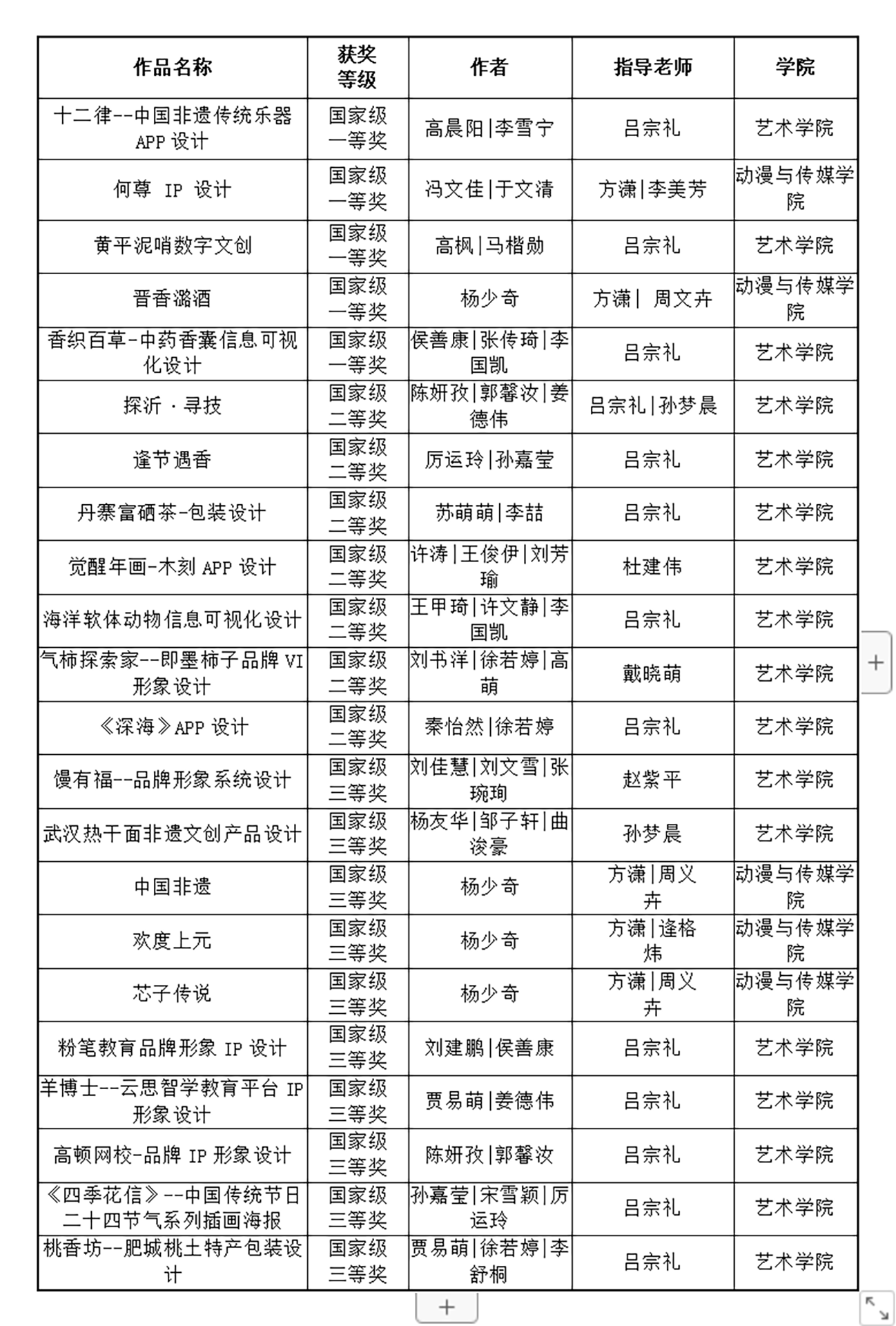 参赛作品围绕 “讲好中国故事” 与“艺术赋能乡村振兴”两大主题进行创作,充分发挥了公司人文学科特色。其中,艺术公司吕宗礼老师指导,高晨阳等同学完成的《十二律——中国非遗传统乐器 APP 设计》作品,以“吹拉弹打”和“古代八音”作为分类基础,展示了各式各样的中国传统乐器及历史背景,以此来让更多人了解中国传统乐器的魅力。动漫与传媒公司方潇、李美秀老师指导,冯文佳等同学完成的《何尊IP设计》作品,以国家一级文物何尊为原型,打造出创意IP形象“何小青”,旨在探求传统文化在现代设计语境中的表达,为博物馆文化创意衍生产品设计提供了方案。艺术公司吕宗礼老师指导,高枫等同学完成的《黄平泥哨数字文创》作品,以泥哨的十二生肖为原型创作泥哨新纹样,并对其包装与文创产品进行设计,让非遗不断创新,彰显非遗魅力。动漫与传媒公司方潇、周义卉老师指导,杨少奇同学完成的《晋香潞酒》作品,采用木刻版画风格,为“中华老字号”潞酒设计出具有强烈视觉冲击力的宣传插画及产品包装,既拓展了木刻版画的应用,又重塑了潞酒的视觉形象,践行了中华优秀传统文化传承与创新。艺术公司吕宗礼指导,侯善康等同学完成的《香织百草-中药香囊信息可视化设计》作品,以中医里的香囊“衣冠疗法”为主线结合信息可视化设计,旨在传播中国中医之美,推动中国优秀传统文化创造性转化、创新性发展。