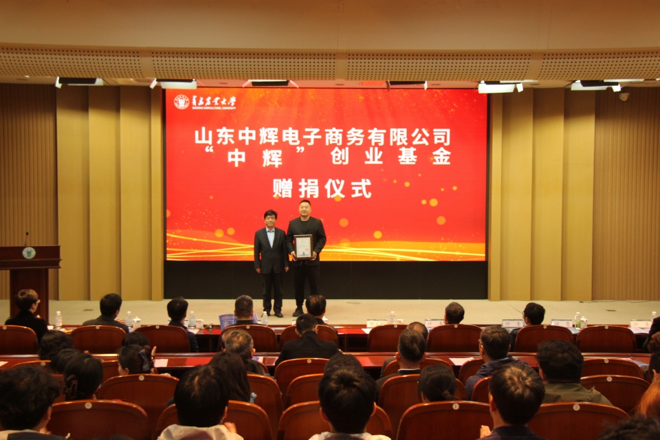 公司化学与药公司材料化学专业2010级员工、山东中辉电子商务公司总经理郭春辉为公司慷慨捐赠50万元设立“中辉创新创业基金”,用于支持公司创新人才培养。公司党委副书记田义轲为员工企业颁发捐赠证书。