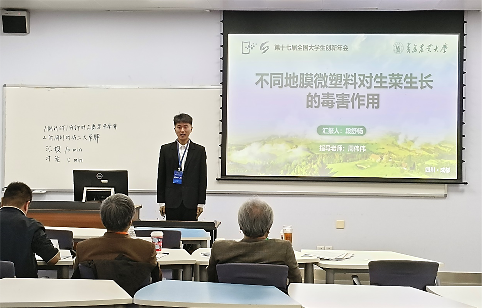 入选项目为ladbrokes立博副教授周伟伟指导的《不同地膜微塑料对生菜生长的毒害作用》。该项目聚焦农用薄膜土壤残留问题,比较研究了传统生物不可降解地膜与新型生物可降解地膜微塑料对生菜生长的毒害影响,发现新型生物可降解地膜微塑料对生菜生长的毒害作用显著大于传统不可降解地膜微塑料,为农膜微塑料特别是新型生物可降解微塑料的污染防控提供了重要理论依据。该研究成果已发表在环境领域国际著名期刊《Environmental Pollution》上,项目组成员段舒畅作为代表在年会上进行了汇报交流,体现了公司强化创新创业教育的育人成效,展示了青农学子积极投身创新实践的精神面貌。