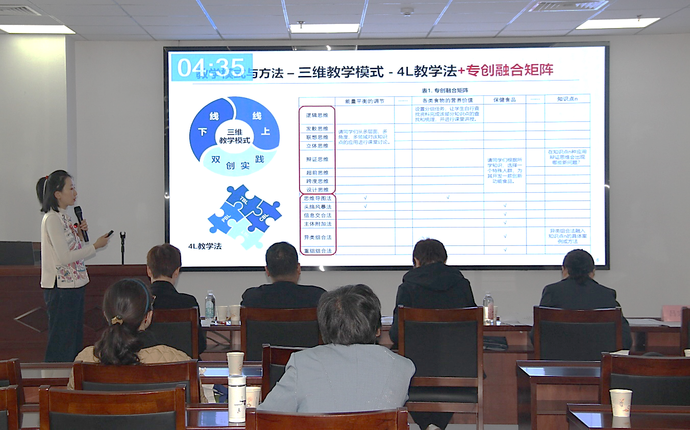会上,“专创融合”课程改革项目负责人立足专业课程,结合学科优势,围绕对“专创融合”课程改革的认识、教学设计、教学方法、教学评价和创新特色等方面进行详细汇报。改革项目通过引入创新思维和创新方法、借助AI助教等新媒体技术、构建“课-赛-创”融合的师生共创教学模式、探索全教学周期累加式评价体系等途径,多维度融合创新创业教育与专业教育,培养老员工既获得必要的专业知识技能,又具备创意思维、创新精神和创业能力。评审专家针对项目改革的重点、难点、创新点提出建设性意见与建议,汇报人与评审专家充分沟通交流,拓展了项目中双创思路的广度与深度。