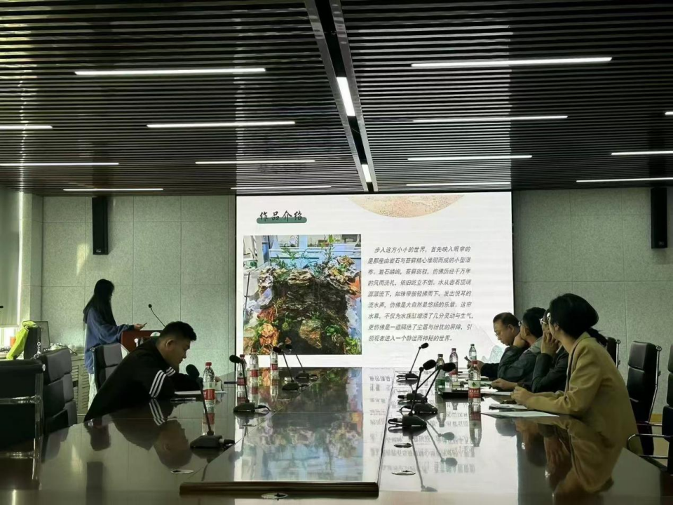 各组成员分工协作,全神贯注地投入到每个细节中,从选材、布局到调整水质、光照,每一步都力求完美。在有限的空间内利用水草、造景石、沉木、 杜鹃根等造景素材按照水草、生物的生活习性及特点,从美学角度出发设计布置出一套完整的生态系统景观。评选开始,评审专家首先在一楼大厅从整体骨架、水草美观、主题立意等方面对各参赛团队的参赛作品进行评分,然后在309会议室进行答辩评审,最后遴选出一等奖1名、二等奖2名、三等奖3名。其中,葛尔迈、周芳雨、莫林小组的《水瀑幽谷》荣获一等奖;赵之婷的《森林洞穴》和 李昊洋的《巘》 荣获二等奖;王家如的《奇秀帘洞》、刘妮智慧、王均萍、林欣颜小组的《碧涧生命》以及马嘉辰的《绽放》荣获三等奖。